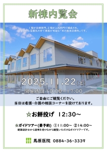 場 所:当医院新棟(住所:徳島県阿南市新野町信里62番地)